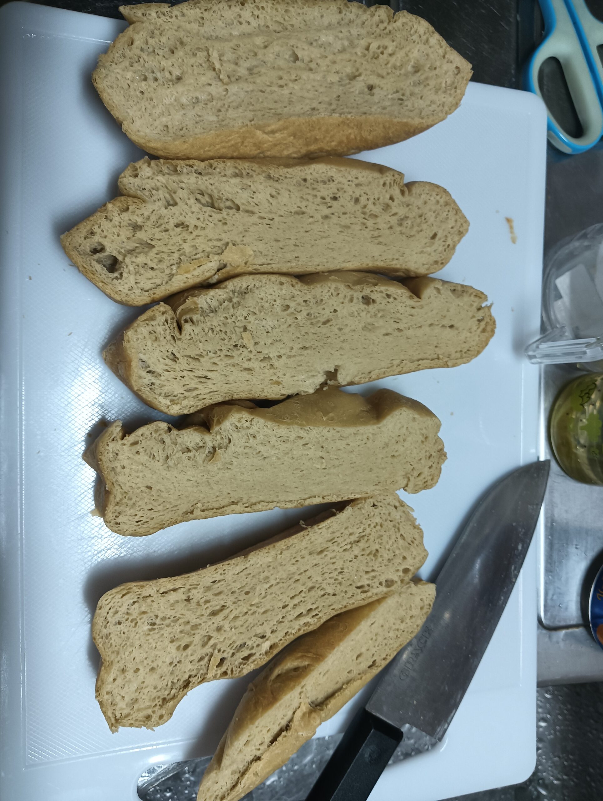 焼き立て直後に試食してみたところ、もちもち過ぎて食感が悪い。そして塩味が効いてる。